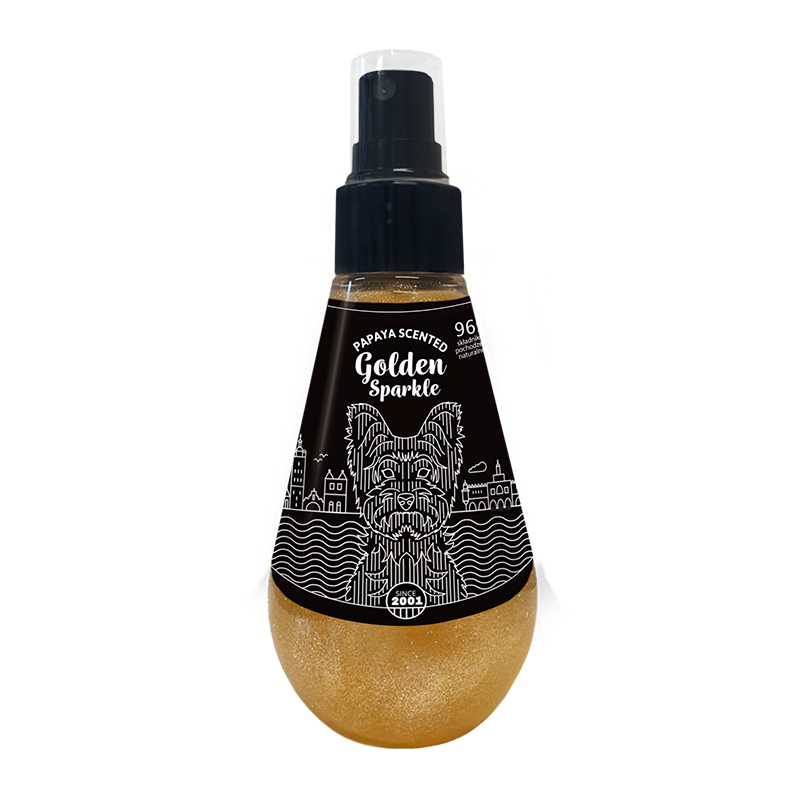 Mgiełka z różowym brokatem o zapachu mango i papai. Drobinki brokatu pozostawiają na sierści piękny połysk. Zawarty w mgiełce pantenol posiada właściwości pielęgnacyjne i nawilżające.