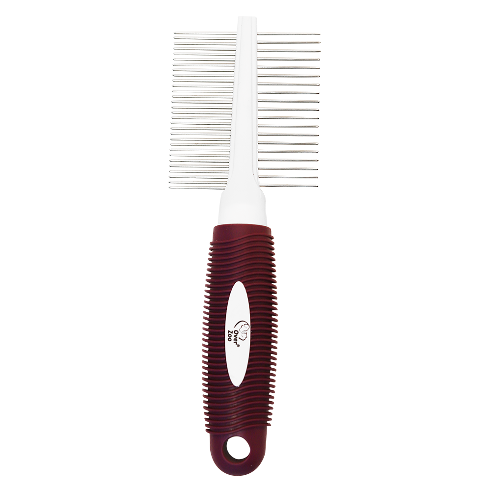 Wygodny grzebień przeznaczony do pielęgnacji wszystkich typów okrywy włosowej. Doskonale rozczesuje włosy, usuwa kołtuny oraz ułatwia stylizację. Zaokrąglone zęby zapobiegają podrażnieniu skóry podczas pielęgnacji zwierzęcia. Miękka, antypoślizgowa rączka zapewnia komfort użytkowania i ułatwia rozczesywanie.