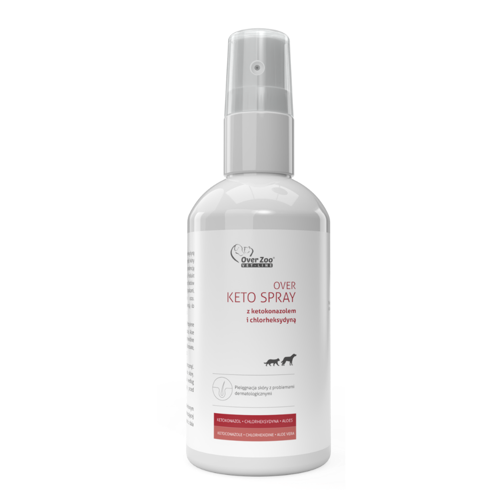 OVER KETO SPRAY 100 ml – Spray z ketokonazolem i chlorheksydyną do pielęgnacji skóry psów i kotów