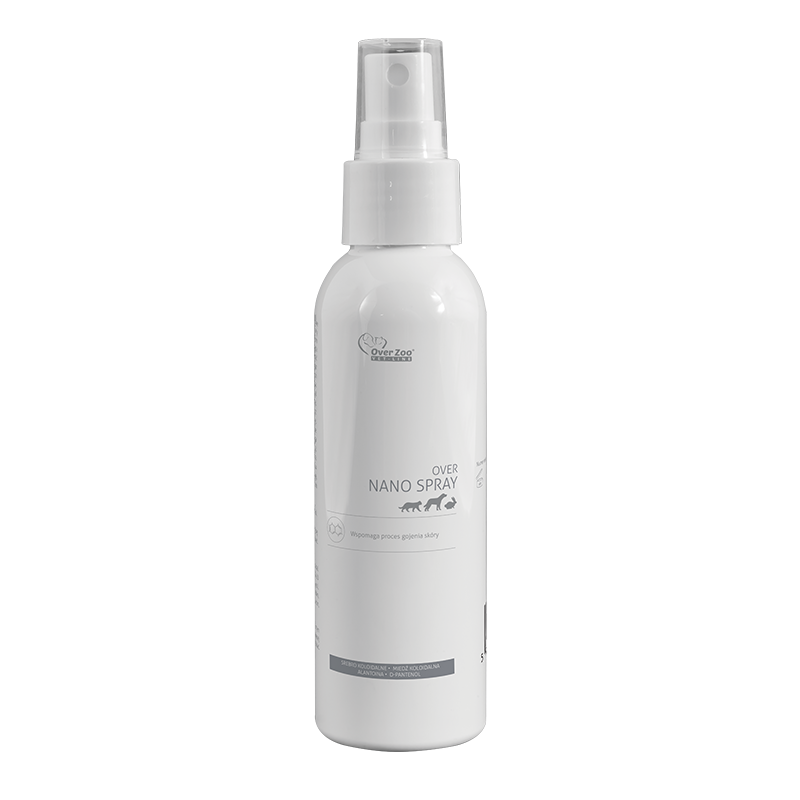 Over Nano Spray to preparat do miejscowej pielęgnacji skóry psów i kotów, stworzony z myślą o otarciach, zadrapaniach i innych powierzchownych zmianach skórnych. Wspiera regenerację naskórka, pomaga utrzymać odpowiedni poziom nawilżenia i łagodzi dyskomfort związany z podrażnieniem skóry. Delikatna formuła nie wywołuje uczucia pieczenia, dlatego dobrze sprawdza się w codziennej pielęgnacji wrażliwych miejsc.