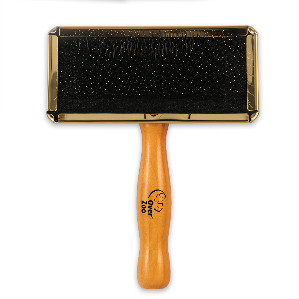 Najważniejszym elementem szczotki są stalowe, lekko wygięte igły ze stali nierdzewnej, które pomagają sprawnie rozczesywać sierść, usuwać kołtuny i uporządkować okrywę włosową. Gumowa poduszka amortyzuje nacisk, dzięki czemu szczotka lepiej dopasowuje się do ciała zwierzęcia i zwiększa komfort pielęgnacji. Całość uzupełnia drewniany uchwyt o ergonomicznym kształcie, który dobrze leży w dłoni i ułatwia wygodne prowadzenie szczotki podczas codziennego użytkowania.
