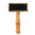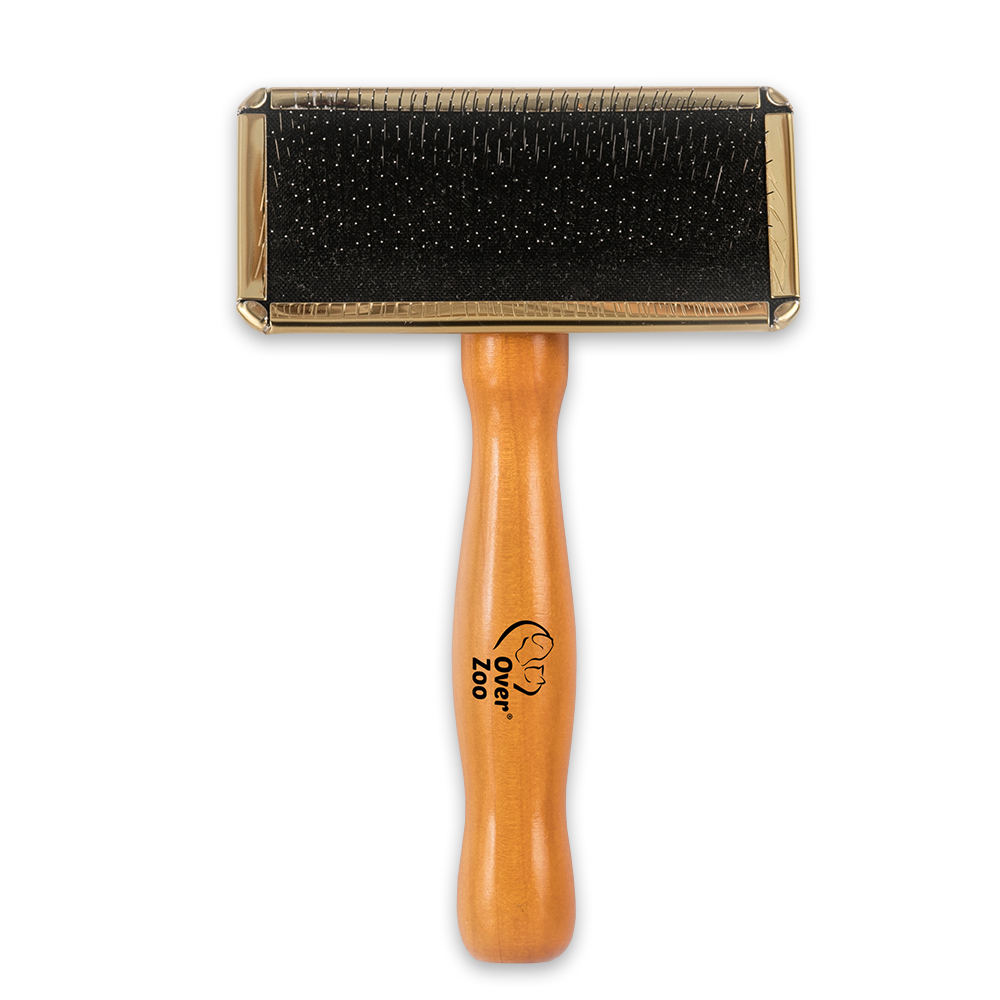 Najważniejszym elementem szczotki są stalowe, lekko wygięte igły ze stali nierdzewnej, które pomagają sprawnie rozczesywać sierść, usuwać kołtuny i uporządkować okrywę włosową. Gumowa poduszka amortyzuje nacisk, dzięki czemu szczotka lepiej dopasowuje się do ciała zwierzęcia i zwiększa komfort pielęgnacji. Całość uzupełnia drewniany uchwyt o ergonomicznym kształcie, który dobrze leży w dłoni i ułatwia wygodne prowadzenie szczotki podczas codziennego użytkowania.